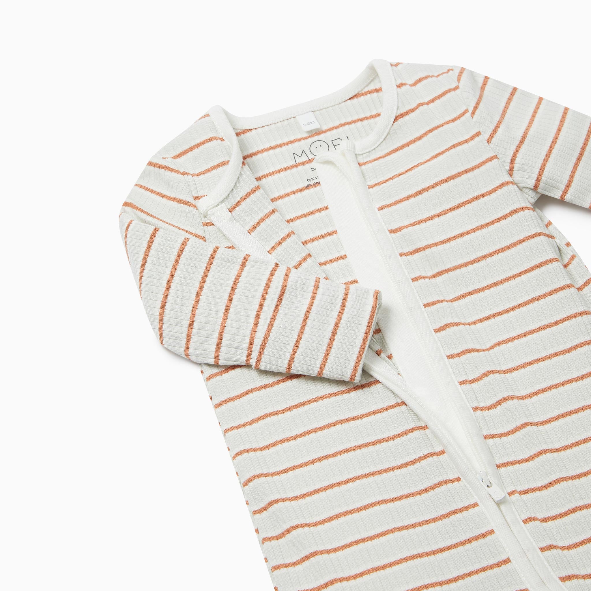 Created to help little ones sleep better, our Mint Ribbed Stripe Zip-Up Sleepsuit is made from soft & stretchy organic cotton and bamboo fabric. Our clever babygrows feature a handy zip from top to toe for fuss-free dressing.