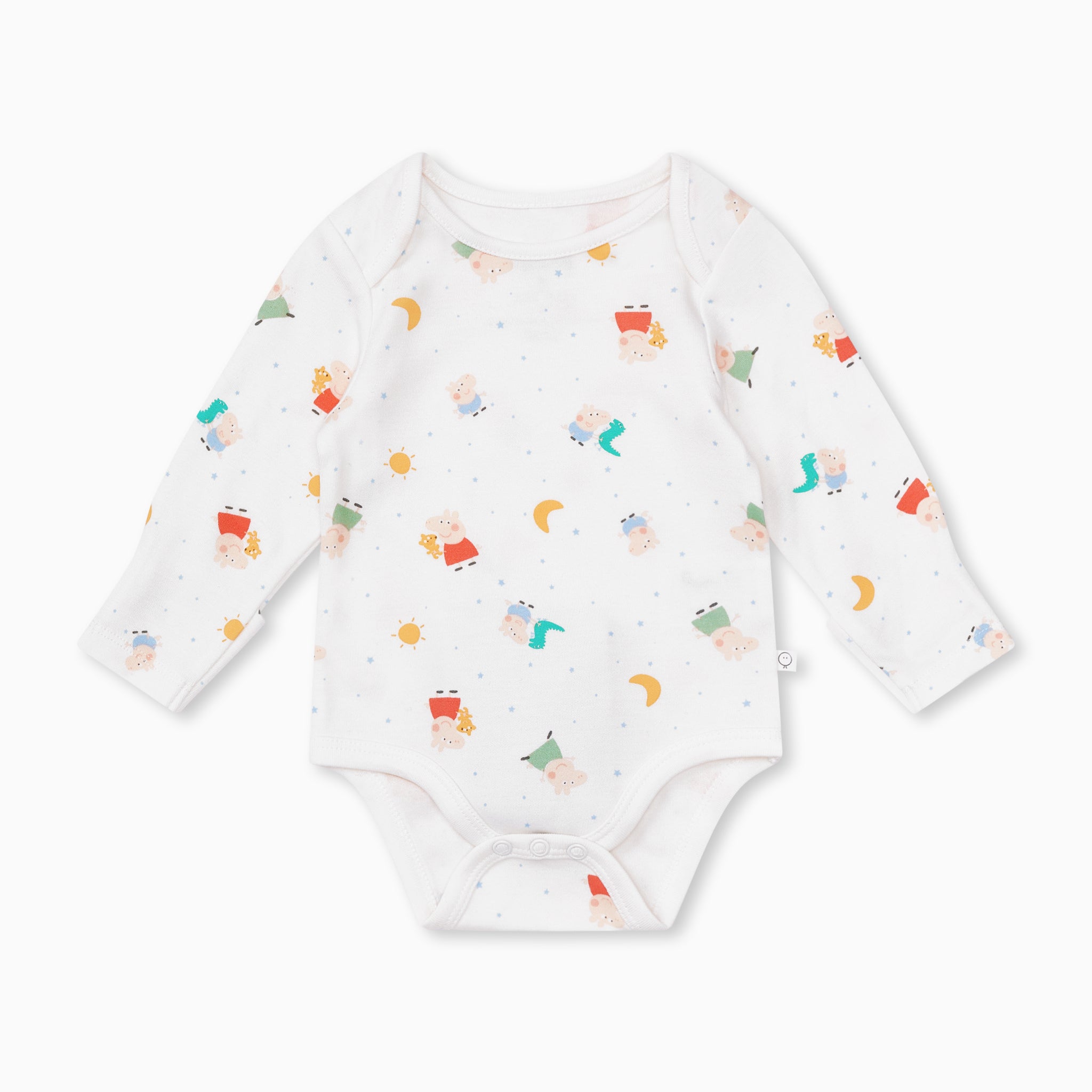 Day or night, little ones will love wearing our colourful & cute Peppa Pig bodysuit. It’s crafted in our signature fabric for comfort and softness. The long sleeve bodysuit features an envelope neck for easy dressing and poppers on the crotch for quick changes.