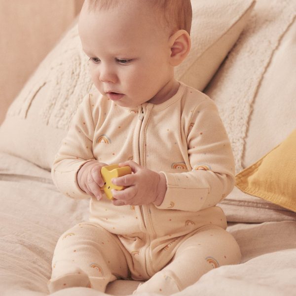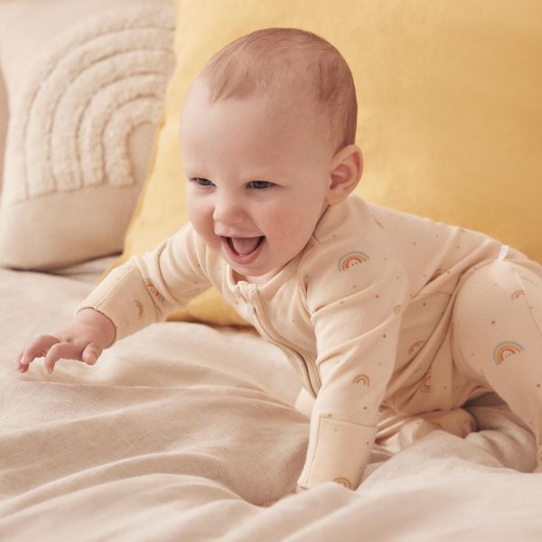 Somewhere over the rainbow, little ones will sleep soundly wearing our Rainbow Print Clever Zip Sleepsuit. It’s crafted in our softest signature fabric to keep little ones sleeping peacefully. The baby sleepsuit features a concealed double-directional zip from head to toe to make dressing and changes simpler.