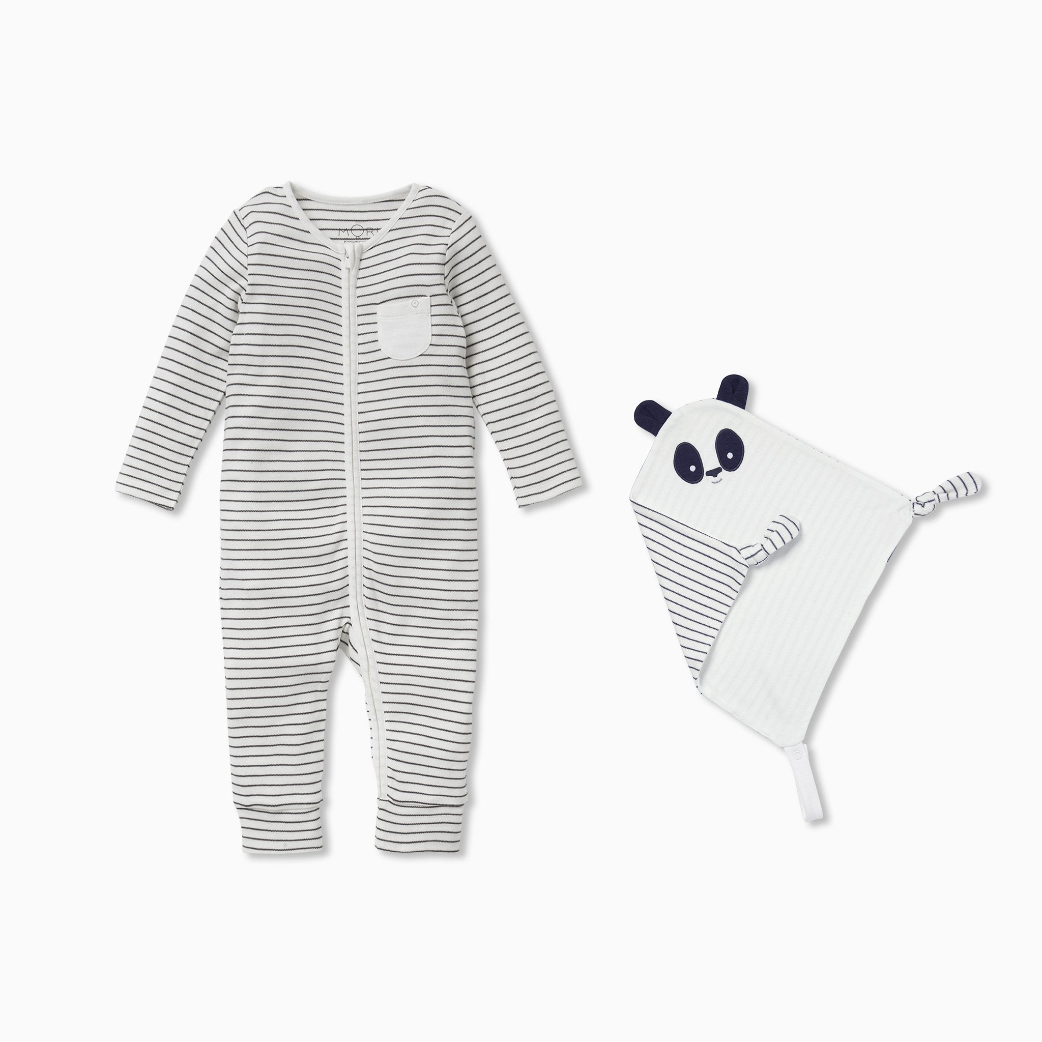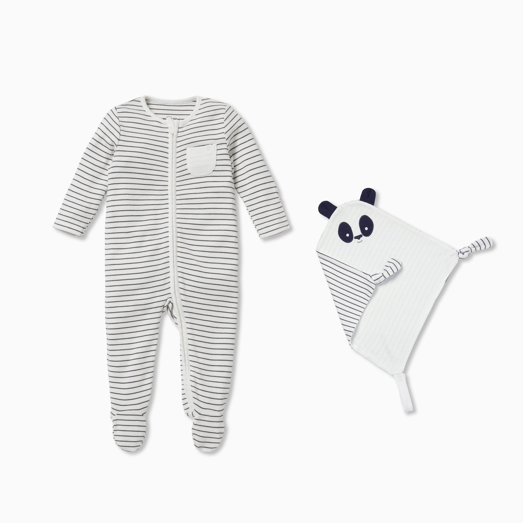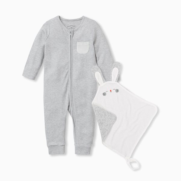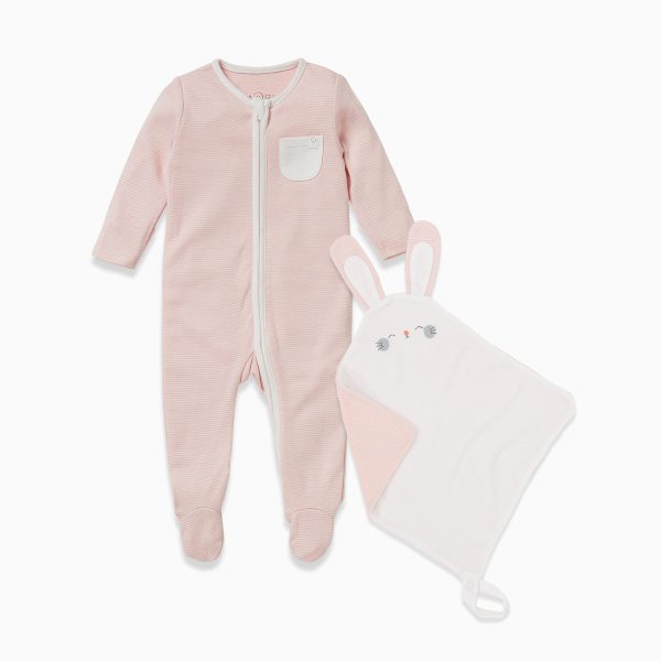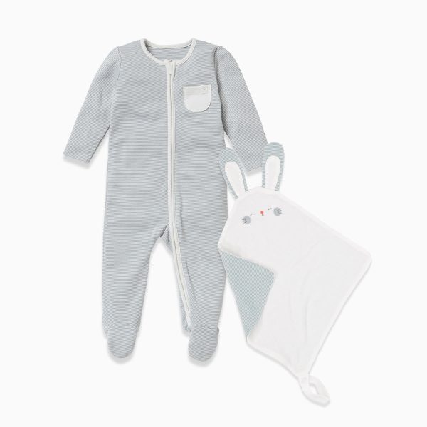 Little ones will sleep soundly with our Sleepsuit & Comforter Set. Crafted in organic cotton and bamboo fabric, the Sleepsuit has a zip up front to make dressing and changing your baby or toddler simpler. The Comforter is made in our softest signature fabric with an adorable bunny face and loop attachment so your little one can cuddle up anywhere.